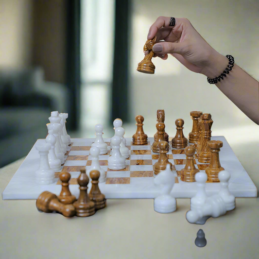 Regular price From Rs.25,000.00 PKRRegular priceUnit price / perRs.400.00 PKRSale price From Rs.25,000.00 PKRBold and Dramatic: White & Brown Marble Chess Set