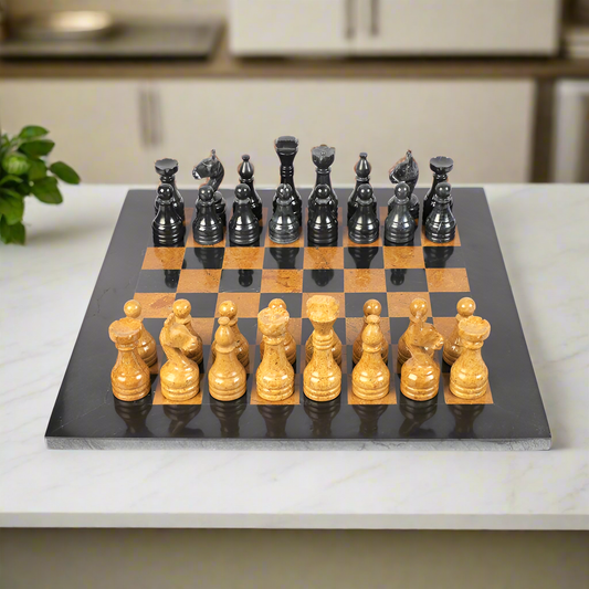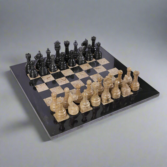 Regular price From Rs.25,000.00 PKRRegular priceUnit price / perRs.400.00 PKRSale price From Rs.25,000.00 PKRGrandiose Gameplay: Black & Onyx Marble Chess Set