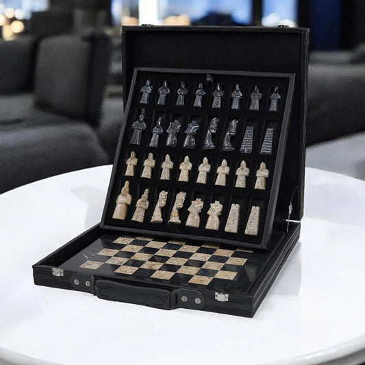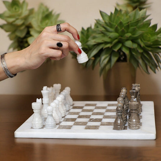 Discover the epitome of elegance and sophistication with our exquisite collection of marble chess sets. Each set is meticulously crafted from the finest quality marble, ensuring a luxurious and enduring gaming experience. Whether you're a seasoned player or a casual enthusiast, our chess sets are the perfect blend of form and function. Indulge in the beauty of marble and elevate your home décor with our stunning collection. Perfect for personal use or as a luxurious gift, our chess sets are designed to impress.