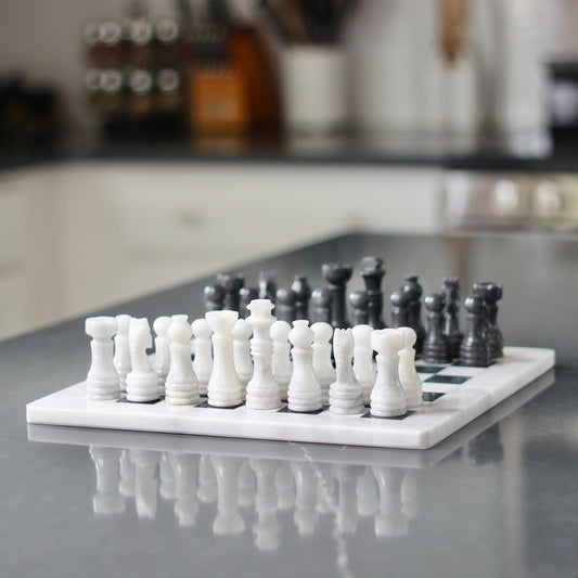 Luxurious and Timeless: White & Onyx Marble Chess Set